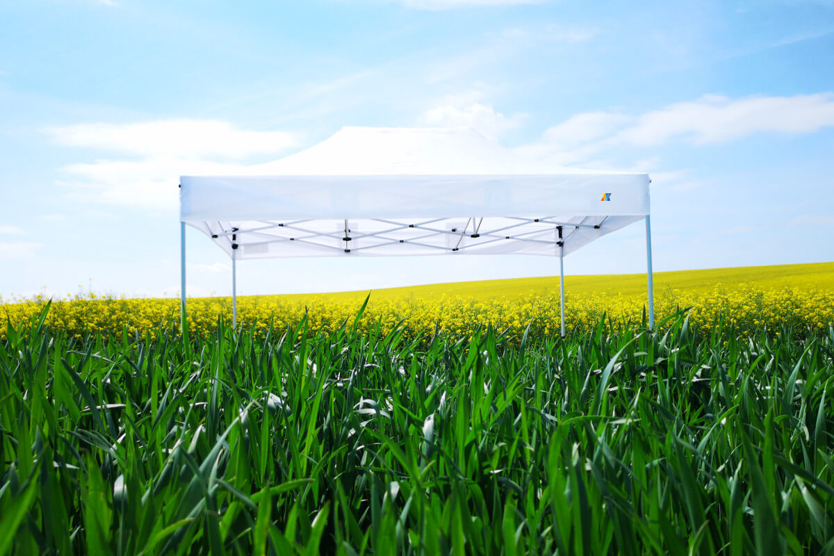 Glöm blekta och trista tält. Våra promotält behåller sina intensiva färger under lång tid tack vare det integrerade UV-skyddet. Materialet är underhållsfritt och kräver ingen extra impregnering. Den eleganta aluminiumkonstruktionen i en neutral färg passar visuellt till alla färgnyanser på duken och understryker ditt varumärkes professionella image.