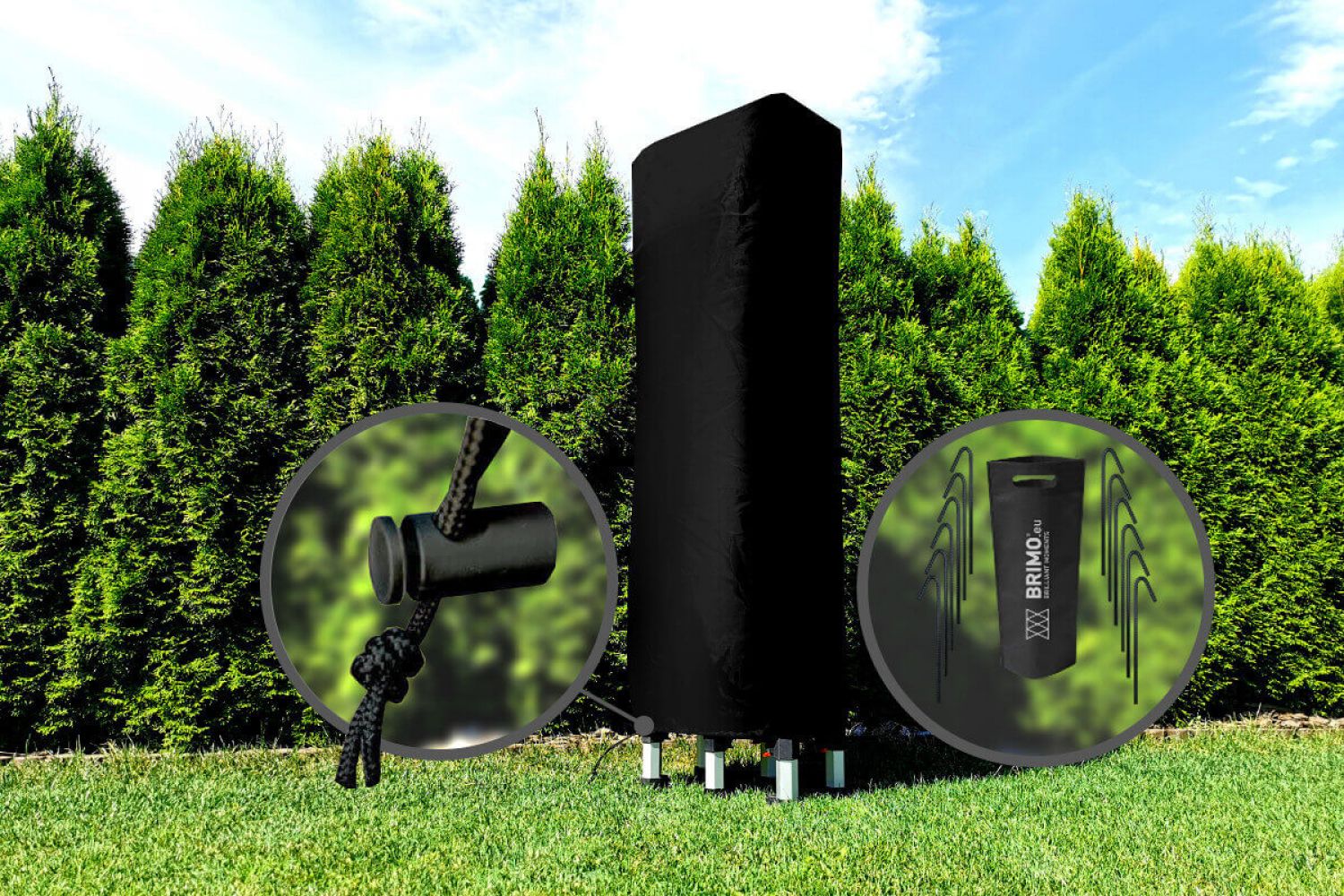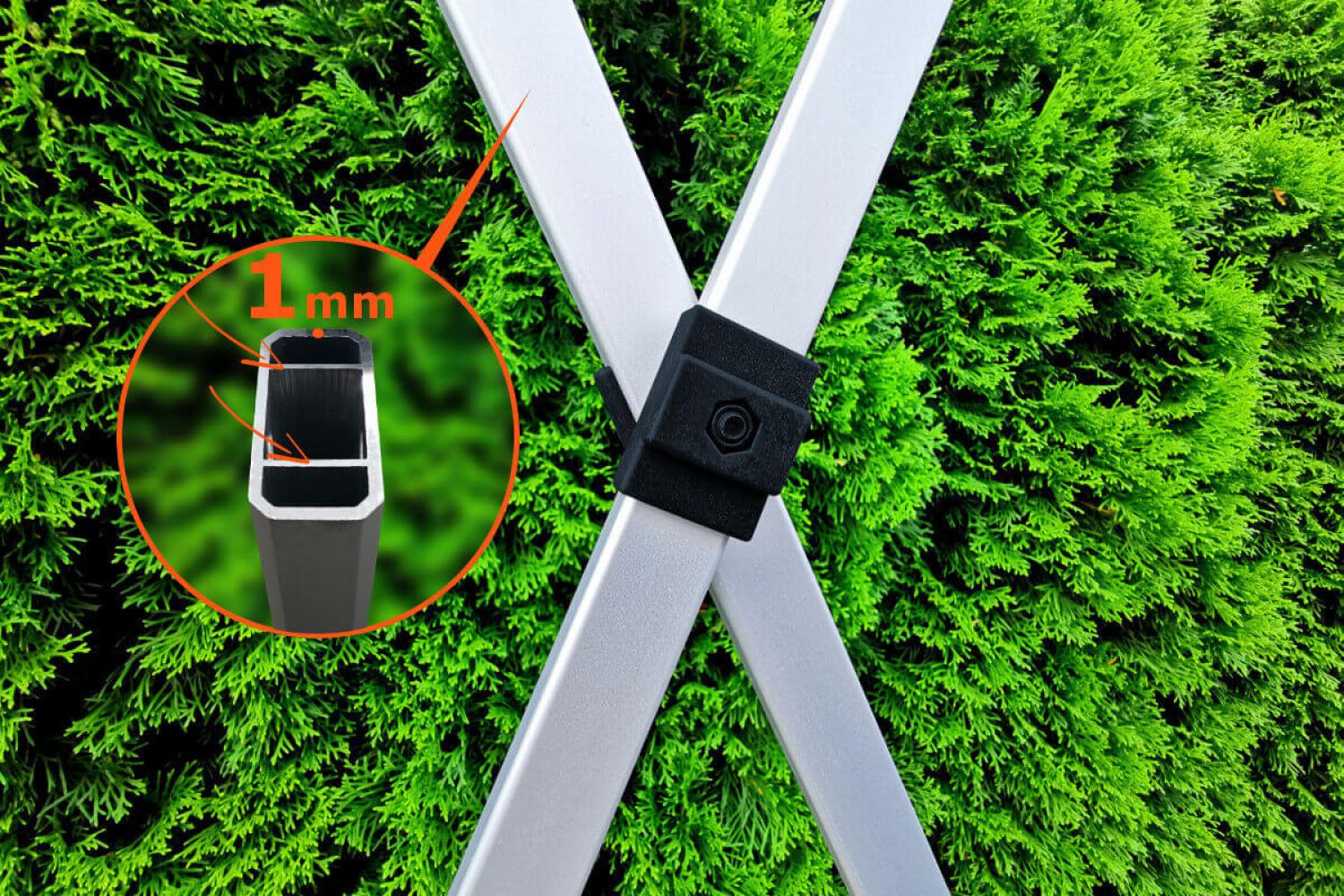 - Vindtålighet: Exclusive modellen i aluminium tål vindar på upp till 60 km/h. Benen har förberedda hål för stabil förankring. Du får förankringspinnar till tältet helt gratis för din maximala säkerhet.