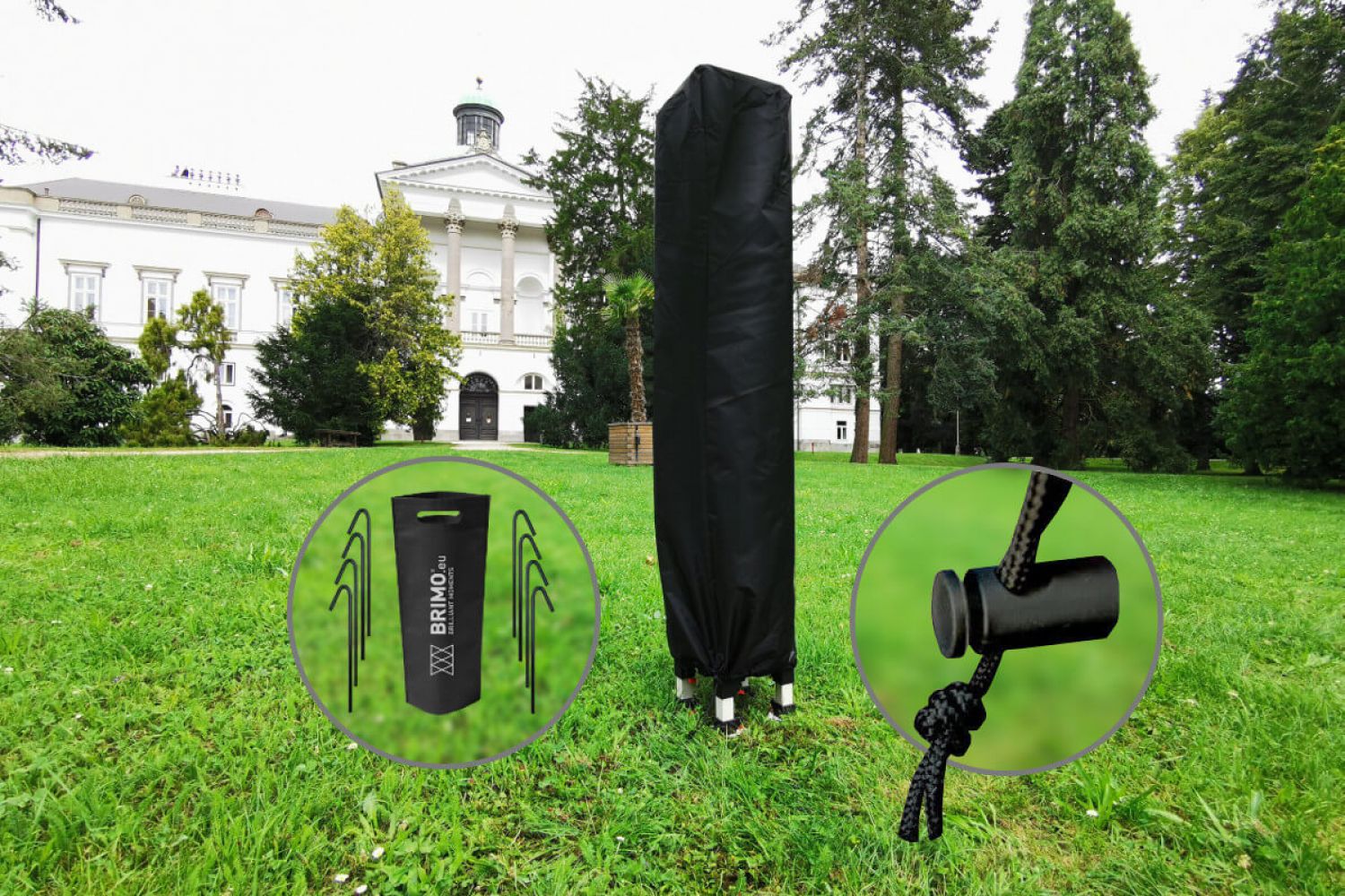 - Takmaterial: 100 % vattentät polyester (350 g/m²) med PVC-beläggning. Det är extremt rivtåligt, skyddar mot UV-strålning och garanterar ett pålitligt skydd mot både regn och sol.