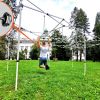 Vårt lättviktiga ståltält överraskar med sin styvhet. Vid korrekt förankring tål det vindbyar på upp till 40 km/h. Det intelligenta systemet för automatisk låsning av konstruktionen gör att den kan hanteras utan stor kraft – dra bara mot dig så "låser" tältet sig själv i arbetsposition. Väggarna fästs vid taket och konstruktionen med breda kardborreband, vilket eliminerar drag och ökar komforten inuti tältet.